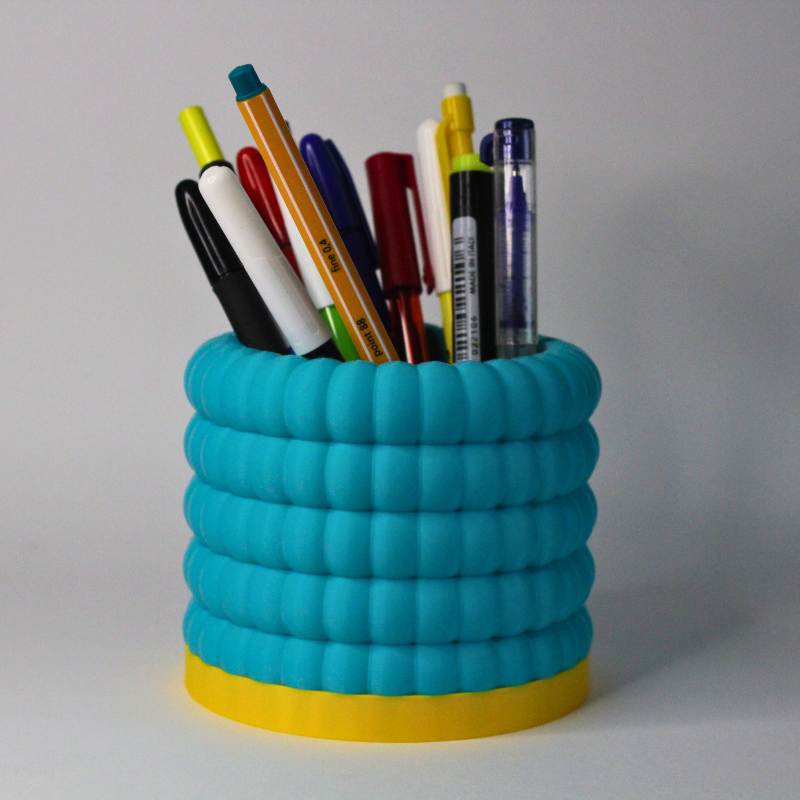 PLA Bicolore – eco-sostenibile , per un prodotto che riduce l’impatto ambientale senza sacrificare la vivacità dei colori. Il PLA garantisce una superficie liscia e resistente, perfetta per un accessorio che resiste al tempo e all’uso quotidiano