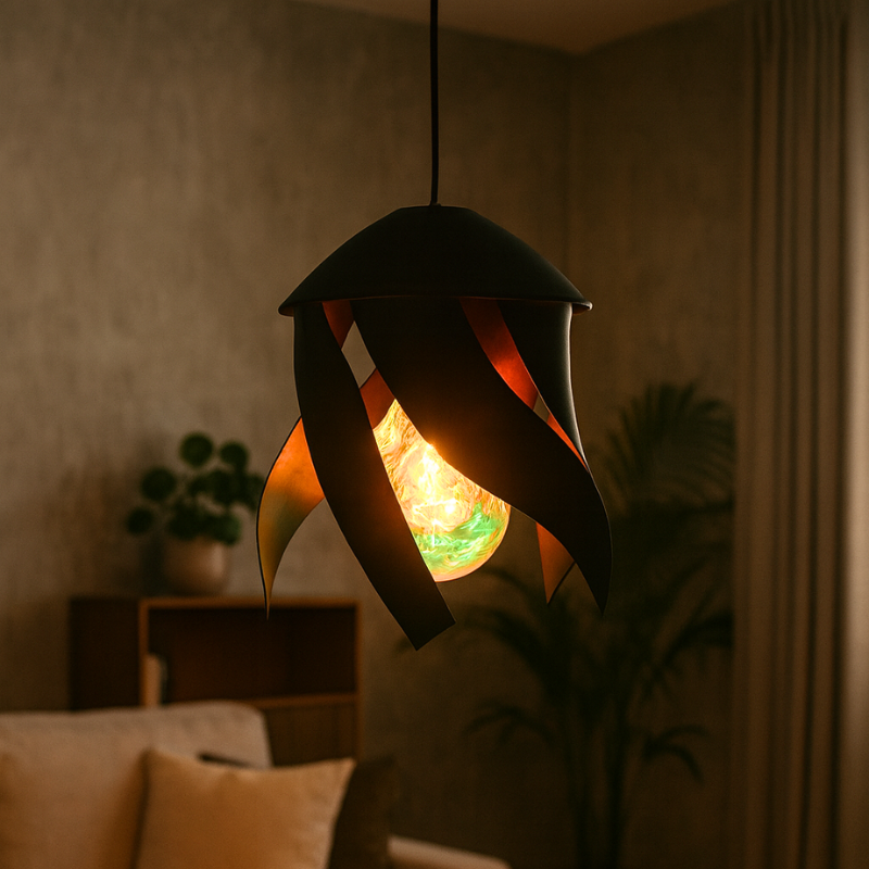 Il PLA e la verniciatura a polveri garantisce una finitura opaca ideale per la diffusione della luce, unendo bellezza e responsabilità ambientale.